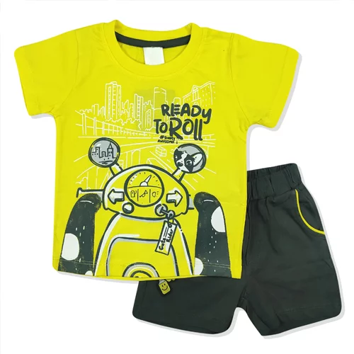 Stylish Half Sleeve T-shirt With Jacket & Half Pant - Lemon Yellow